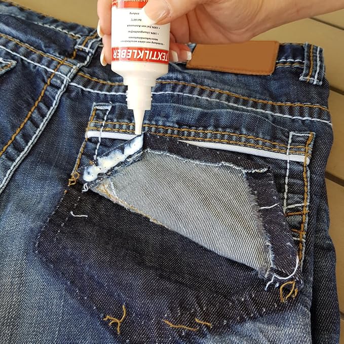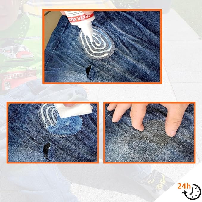 Keine Lust auf lange Wartezeit? Mit einem Heißluftföhn bei 50 - 70 °C kann der Trocknungsvorgang stark beschleunigt werden. So schaffst du’s eventuell ja doch noch rechtzeitig zum ersten Date! Du möchtest ein Loch, etwa in deiner Lieblingsjeans, überkleben? Stelle sicher, dass dein Flicken abgerundet ist und du den Kleber gut bis an den Rand verteilst. So stellst du sicher, dass das Material mit der Zeit nicht abhebt.